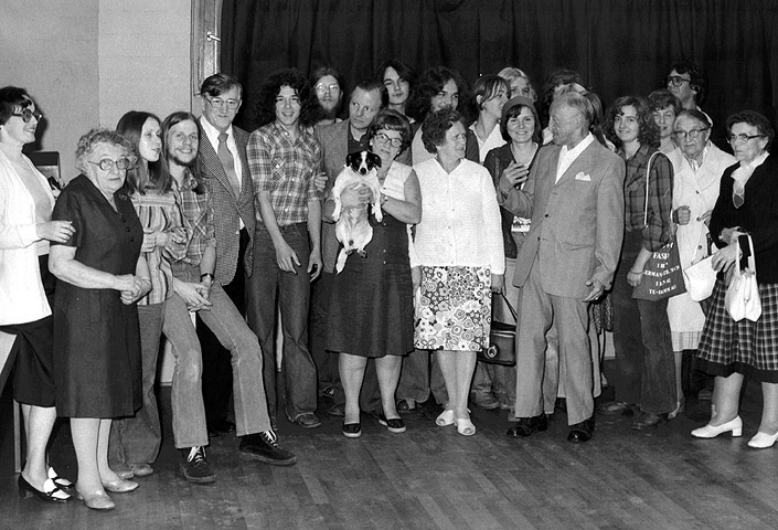 Als Gegenleistung für die Benutzung des Übungsraums gestalten Arne und seine Freunde das Fest "Jung und Alt" für das VGH. Auf diesem Gruppenbild der Gäste sind Silvia als Dritte von links, Andreas als Vierter und Arne als Sechster zu sehen. Renegald schaut hinter der Dame mit dem Hund hervor.