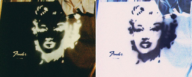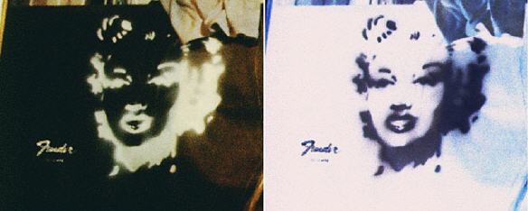 Jetzt wird auch der Bandname Zelta Zonk gewählt. Den hat Andreas in einer Geschichte über Marilyn Monroe (von der er zu der Zeit ein Fan ist) aufgeschnappt: Marilyn hat öfter "Zelda Zonk" als Tarnnamen genutzt und z.B. in Hotelregistrierungen eingetragen, um unerkannt zu bleiben. Daraus wird dann "Zelta Zonk", das wirkt irgendwie "knackiger". Von nun an wird auch Marilyns Konterfei Zelta Zonk durch die Glamrock Phase begleiten.