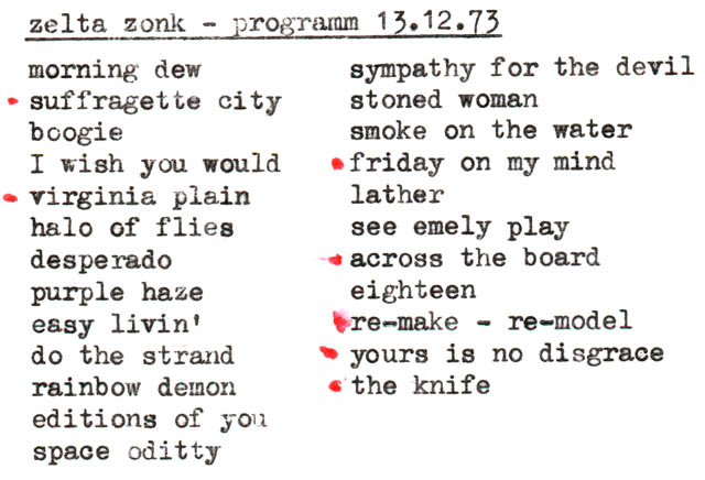 Zelta Zonk ist eine Band, die Ende 1960er / Anfang 1970er Jahre in Berlin-Britz entsteht und bis Ende der Siebziger lebt. Hier liefern wir Informationen zu Zelta Zonk und den Geschehnissen zwischen 1970 und 1980.
